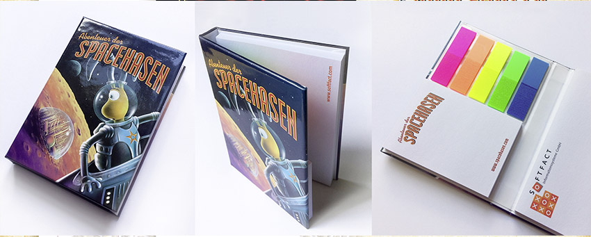 Pfefferminz Pastillen, Mousepad, Puzzles, Jausendose, Poster, CD mit Booklet, Haftnotizen, etc.. Mehr dazu auf: spacehasen.com
